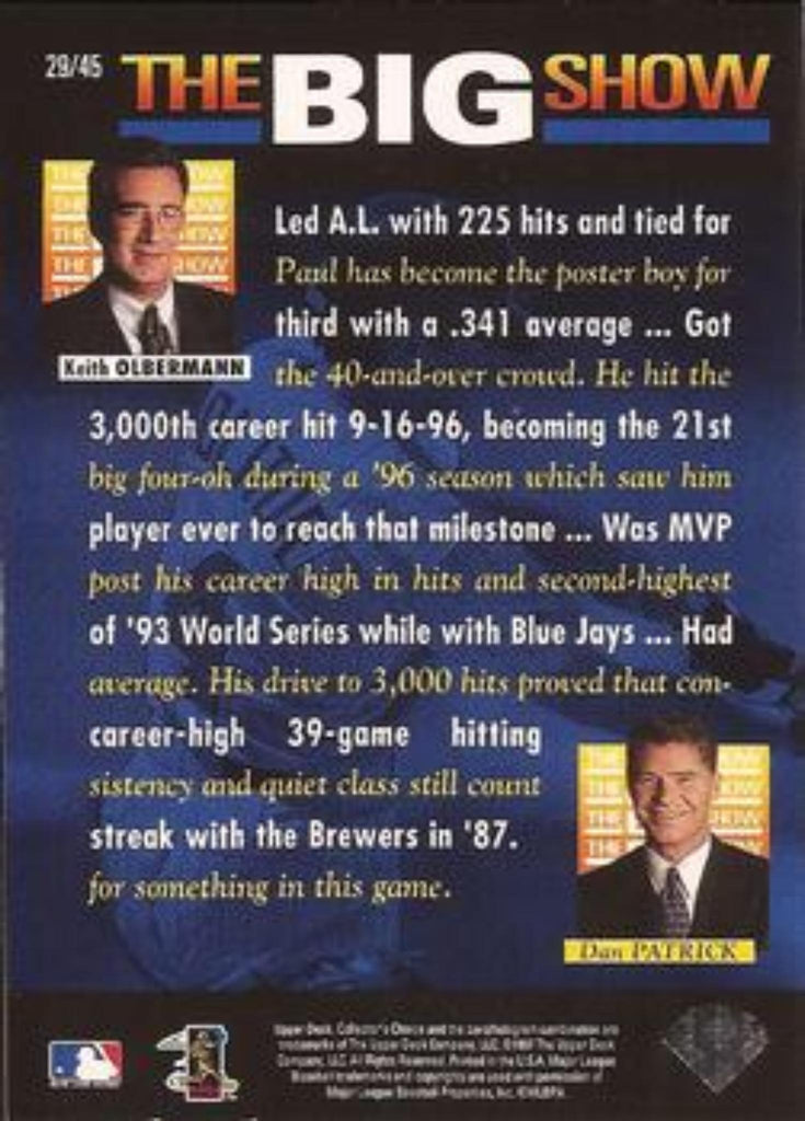 This is a nice example of a 1997 Collector's Choice #29 Paul Molitor The Big Show.