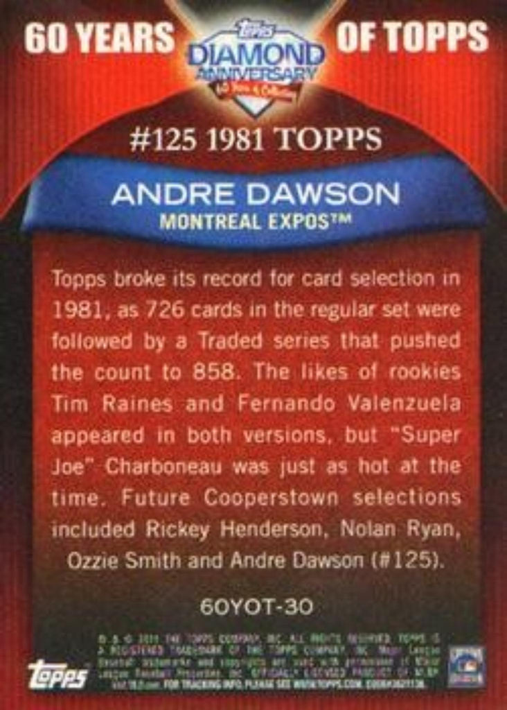 This is a nice example of a 2011 Topps #60YOT-30 Andre Dawson 60 Years of Topps.