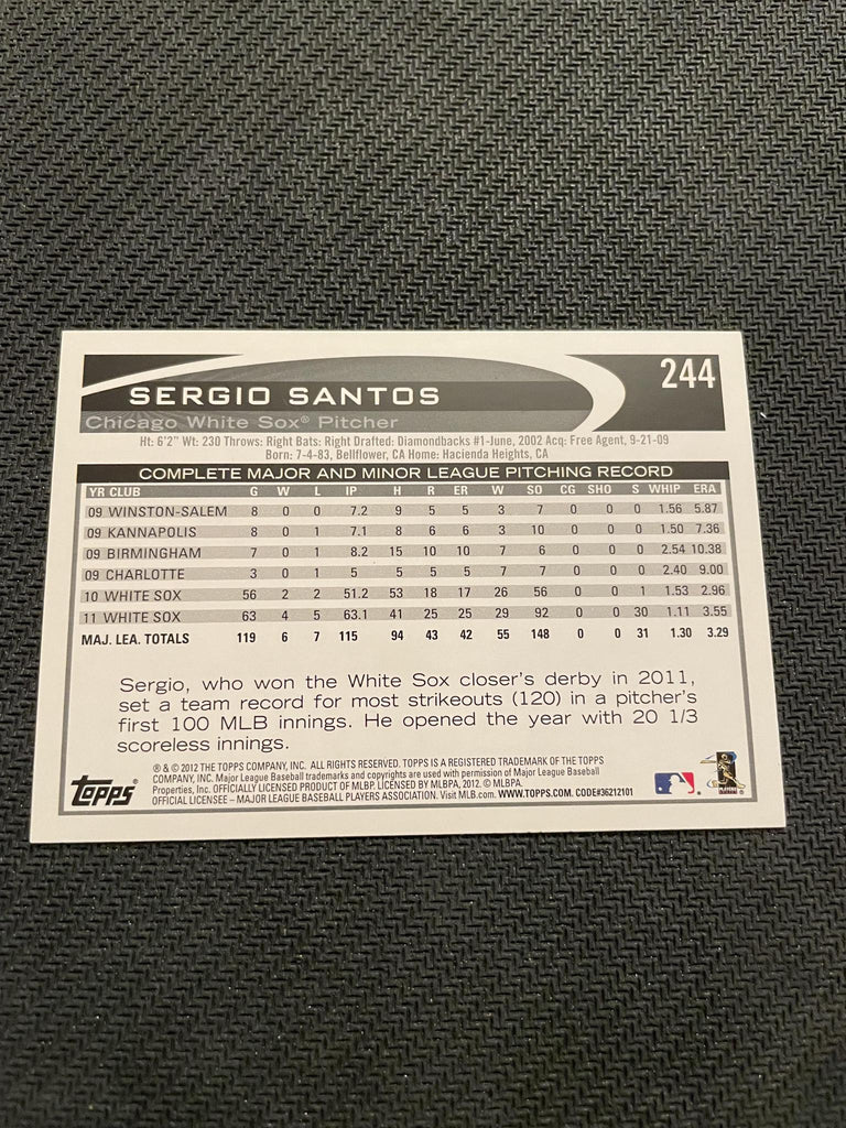 This is a nice example of a 2012 Topps #244 Sergio Santos Red.