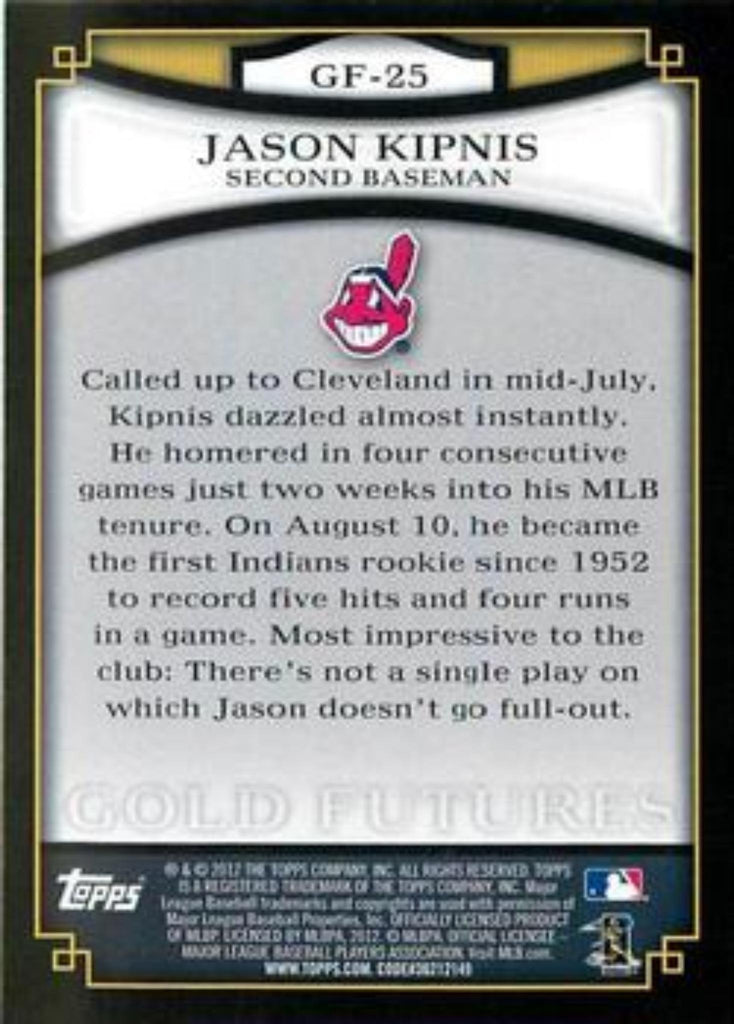 This is a nice example of a 2012 Topps #GF-25 Jason Kipnis Gold Futures.