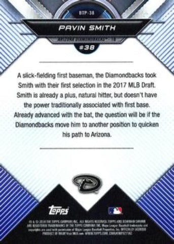 This is a nice example of a 2018 Bowman #BTP-38 Pavin Smith Bowman Chrome Scouts' Top 100.