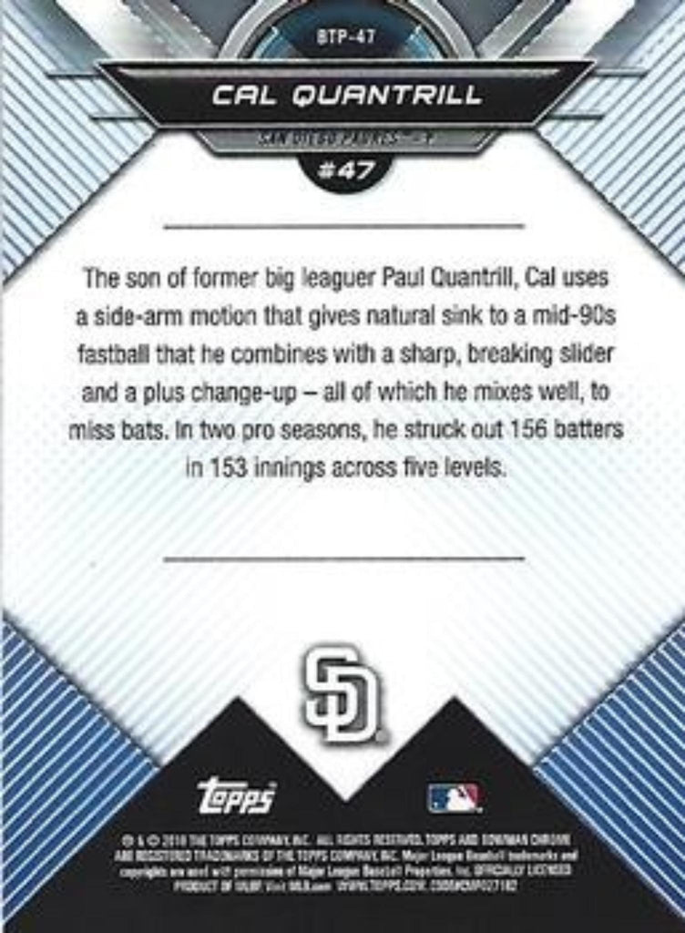This is a nice example of a 2018 Bowman #BTP-47 Cal Quantrill Bowman Chrome Scouts' Top 100.