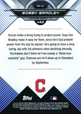 This is a nice example of a 2018 Bowman #BTP-62 Bobby Bradley Bowman Chrome Scouts' Top 100.