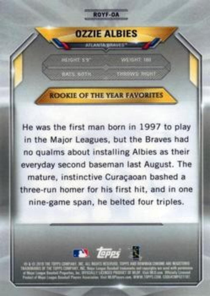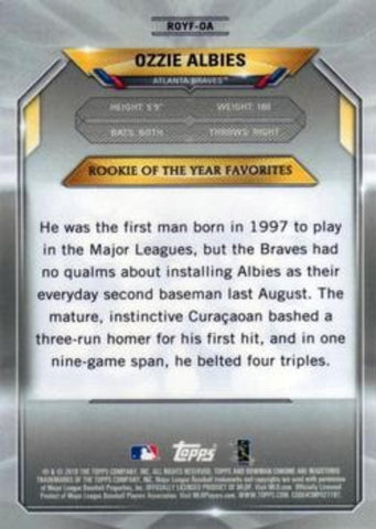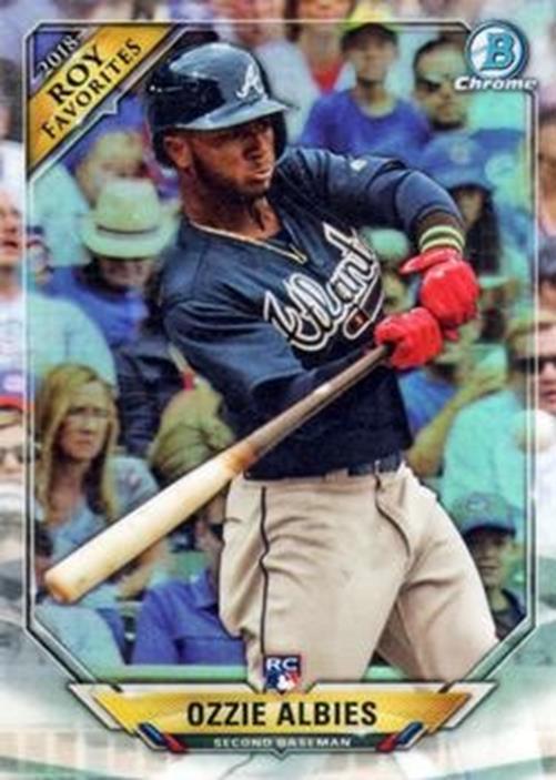 This is a nice example of a 2018 Bowman #ROYF-OA Ozzie Albies Chrome Rookie of the Year Favorites.