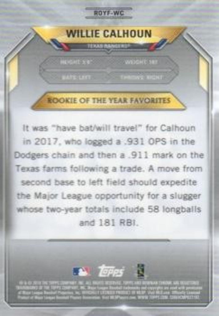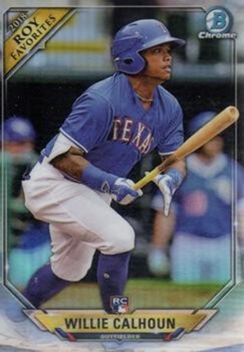 This is a nice example of a 2018 Bowman #ROYF-WC Willie Calhoun Chrome Rookie of the Year Favorites.