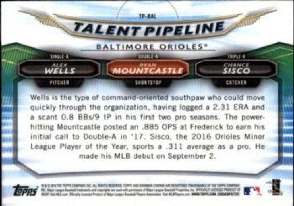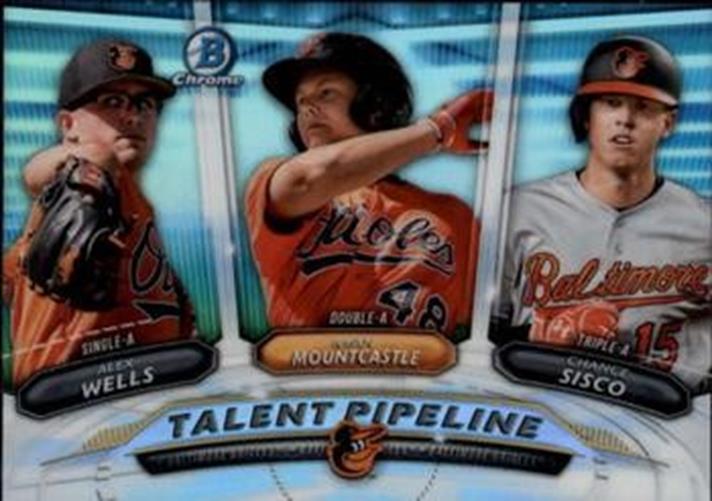 This is a nice example of a 2018 Bowman #TP-BAL Chance Sisco / Ryan Mountcastle / Alex Wells Chrome Talent Pipeline.