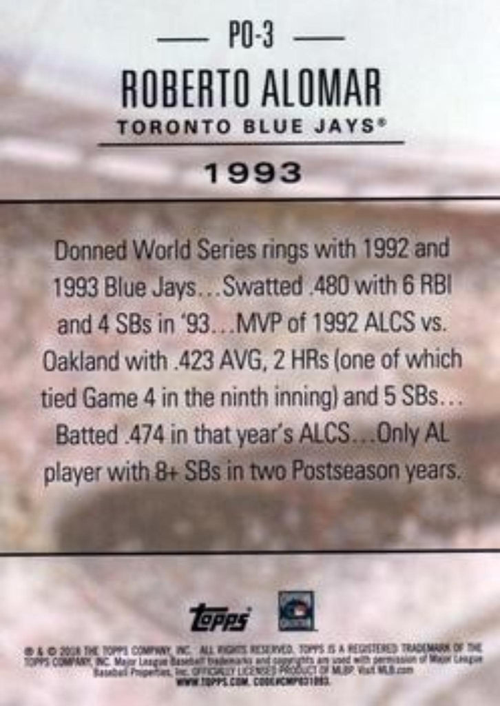This is a nice example of a 2018 Topps Update #PO-3 Roberto Alomar Postseason Preeminence.