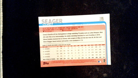 This is a nice example of a 2019 Topps Chrome #106 Corey Seager . The card is right out of the pack. We will combine shipping. Sales tax is applied to Maryland residents. Free shipping orders less than $20 will be shipped PWE.Other important information about this card: In 2019 Corey Seager played for the Los Angeles Dodgers.Please check out our other listings for more great cards.