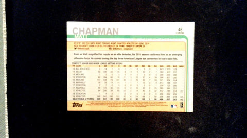 This is a nice example of a 2019 Topps Chrome #46 Matt Chapman . The card is right out of the pack. We will combine shipping. Sales tax is applied to Maryland residents. Free shipping orders less than $20 will be shipped PWE.Other important information about this card: In 2019 Matt Chapman played for the Oakland Athletics.Please check out our other listings for more great cards.