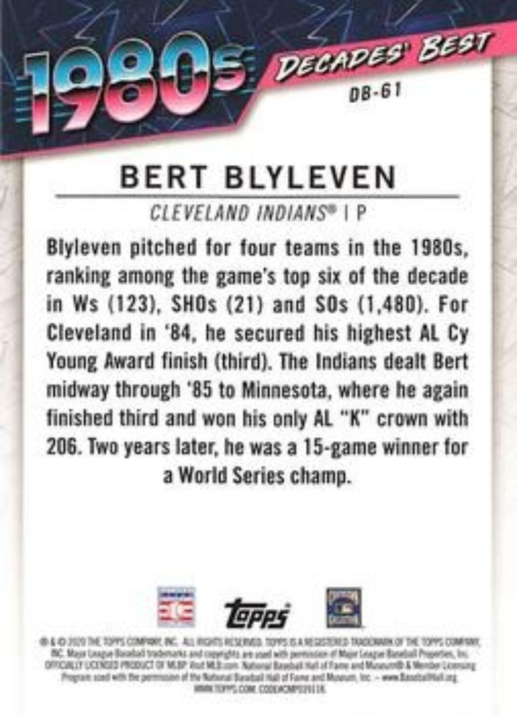 This is a nice example of a 2020 Topps #DB-61 Bert Blyleven Decades' Best (Series Two).