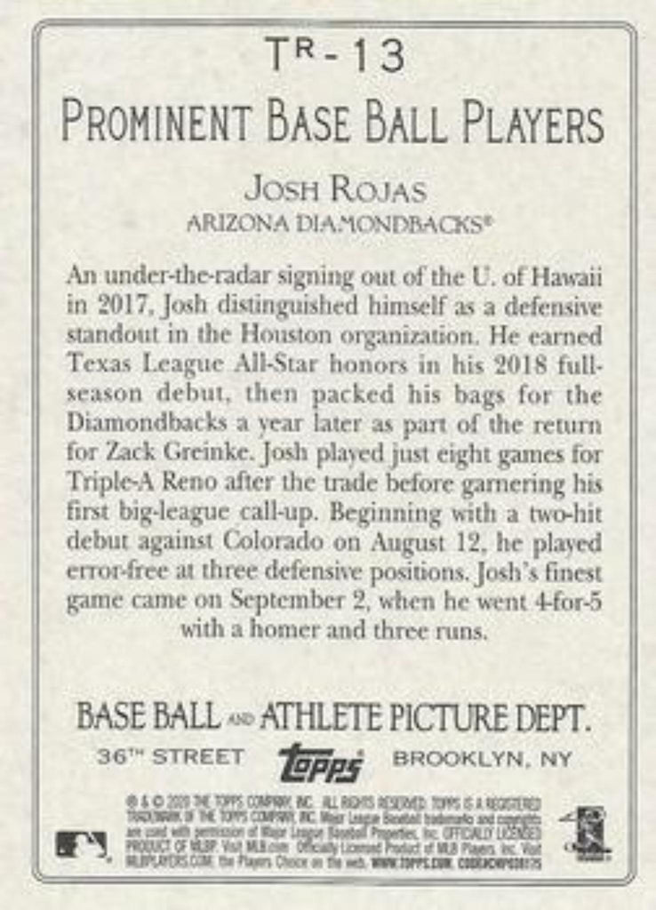 This is a nice example of a 2020 Topps #TR-13 Josh Rojas Turkey Red 2020 (Series 2).