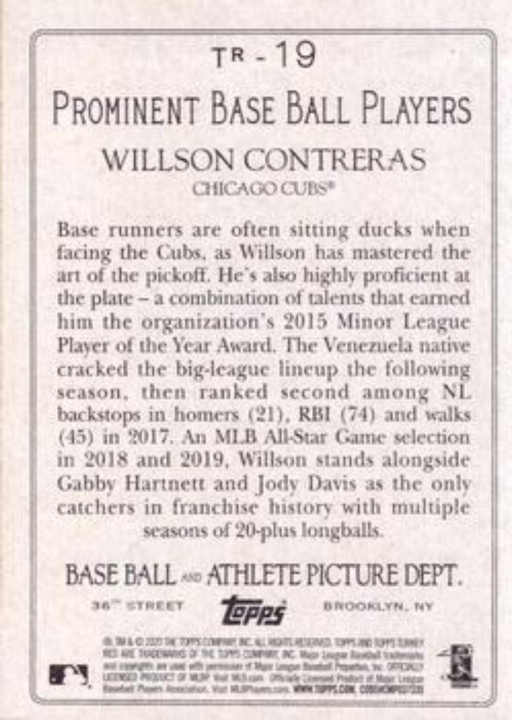 This is a nice example of a 2020 Topps #TR-19 Willson Contreras Turkey Red 2020 (Series 1).