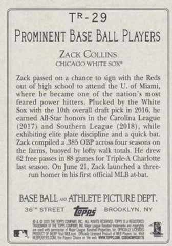 This is a nice example of a 2020 Topps #TR-29 Zack Collins Turkey Red 2020 (Series 2).