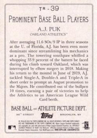 This is a nice example of a 2020 Topps #TR-39 A.J. Puk Turkey Red 2020 (Series 1).