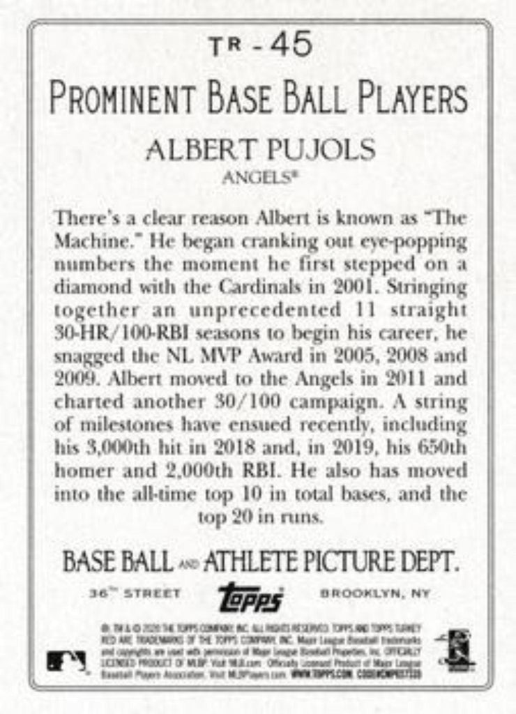 This is a nice example of a 2020 Topps #TR-45 Albert Pujols Turkey Red 2020 (Series 1).