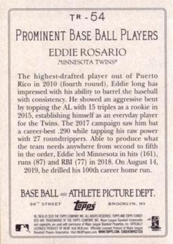 This is a nice example of a 2020 Topps #TR-54 Eddie Rosario Turkey Red 2020 (Series 1).