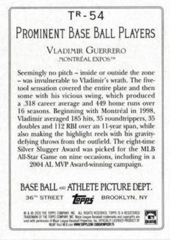This is a nice example of a 2020 Topps #TR-54 Vladimir Guerrero Turkey Red 2020 (Series 2).