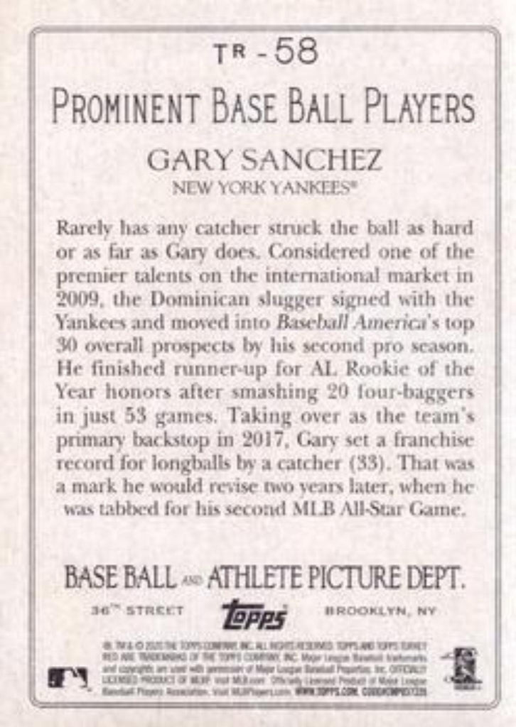 This is a nice example of a 2020 Topps #TR-58 Gary Sanchez Turkey Red 2020 (Series 1).