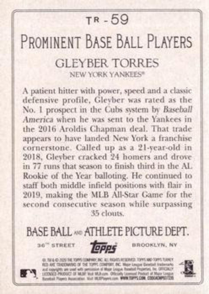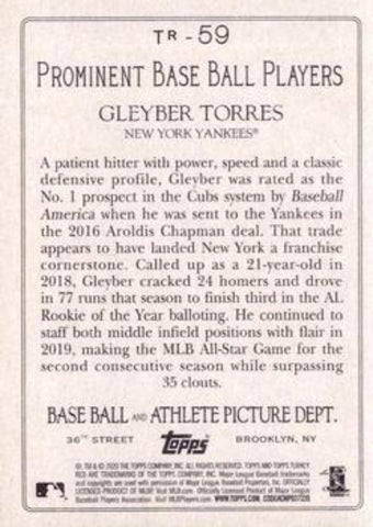 This is a nice example of a 2020 Topps #TR-59 Gleyber Torres Turkey Red 2020 (Series 1).