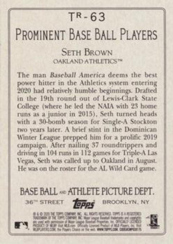 This is a nice example of a 2020 Topps #TR-63 Seth Brown Turkey Red 2020 (Series 2).