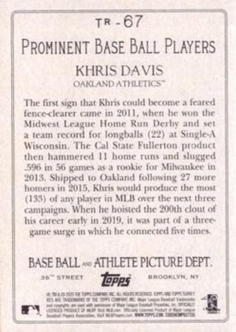 This is a nice example of a 2020 Topps #TR-67 Khris Davis Turkey Red 2020 (Series 1).