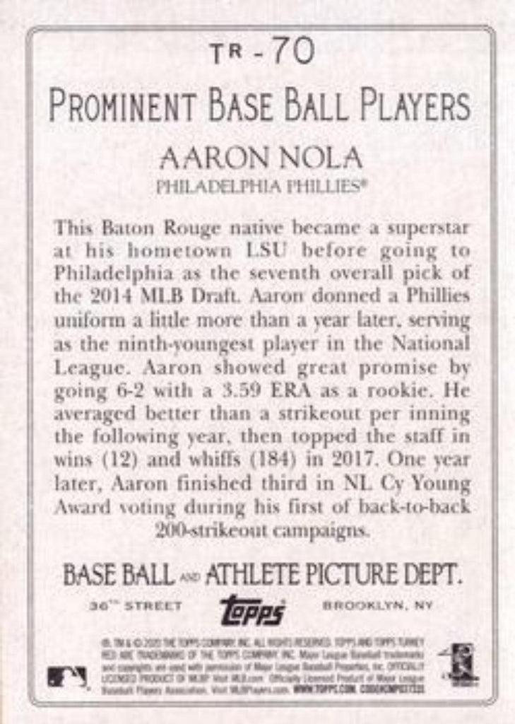 This is a nice example of a 2020 Topps #TR-70 Aaron Nola Turkey Red 2020 (Series 1).