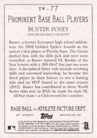 This is a nice example of a 2020 Topps #TR-77 Buster Posey Turkey Red 2020 (Series 1).