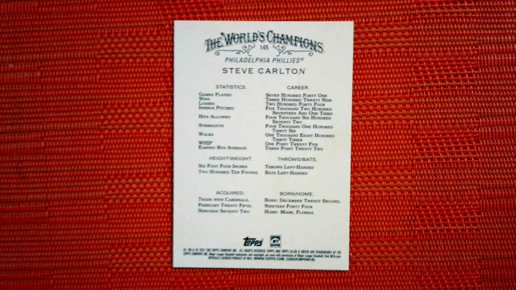 2021 Topps Allen & Ginter Hot Box Silver Foil #145 Steve Carlton