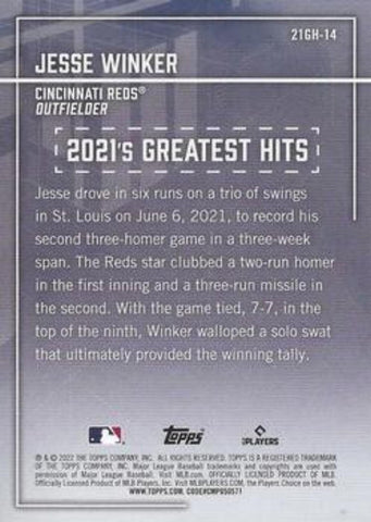 This is a nice example of a 2022 Topps #21GH-14 Jesse Winker 2021's Greatest Hits.
