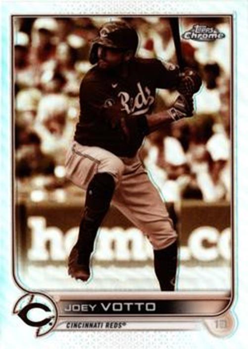 This is a nice example of a 2022 Topps Chrome #177 Joey Votto Sepia Refractor.