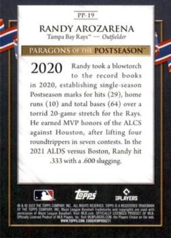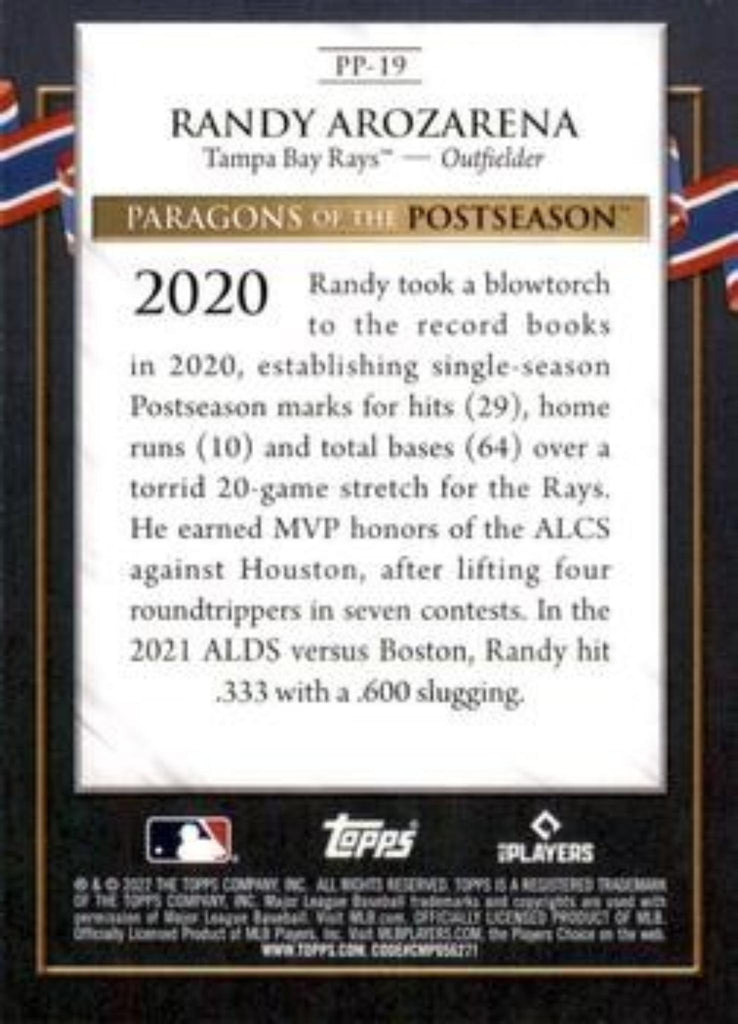 This is a nice example of a 2022 Topps Update #PP-19 Randy Arozarena Paragons of the Postseason.