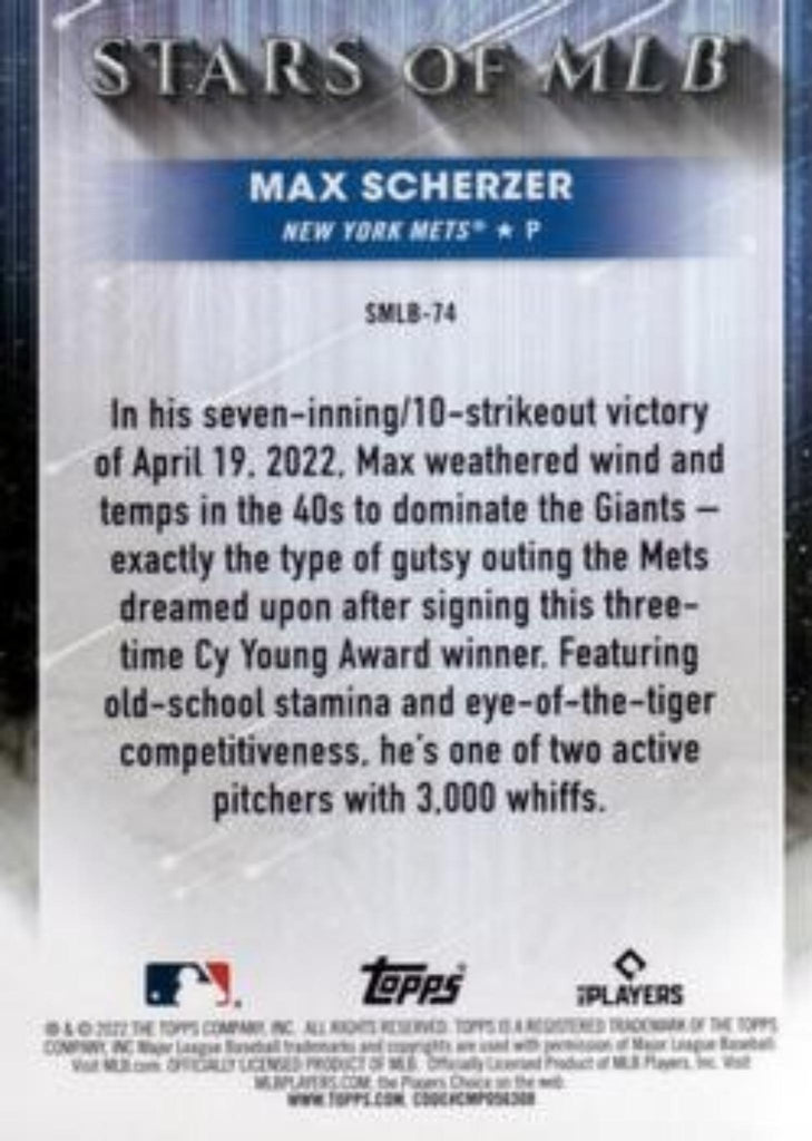 This is a nice example of a 2022 Topps Update #SMLB-74 Max Scherzer Stars of MLB.