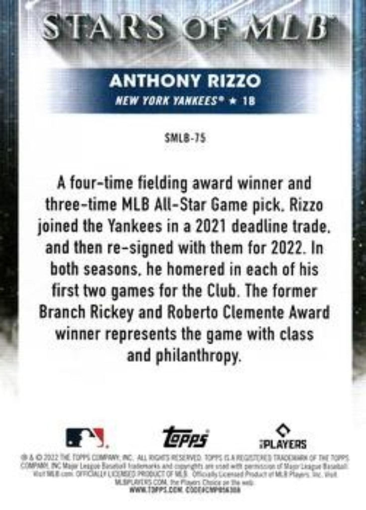 This is a nice example of a 2022 Topps Update #SMLB-75 Anthony Rizzo Stars of MLB.