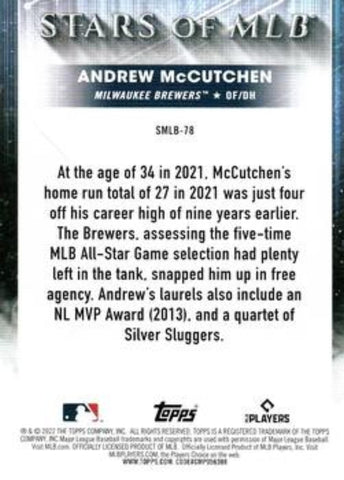 This is a nice example of a 2022 Topps Update #SMLB-78 Andrew McCutchen Stars of MLB.