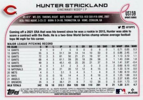 In 2022 Hunter Strickland played for the Cincinnati Reds.