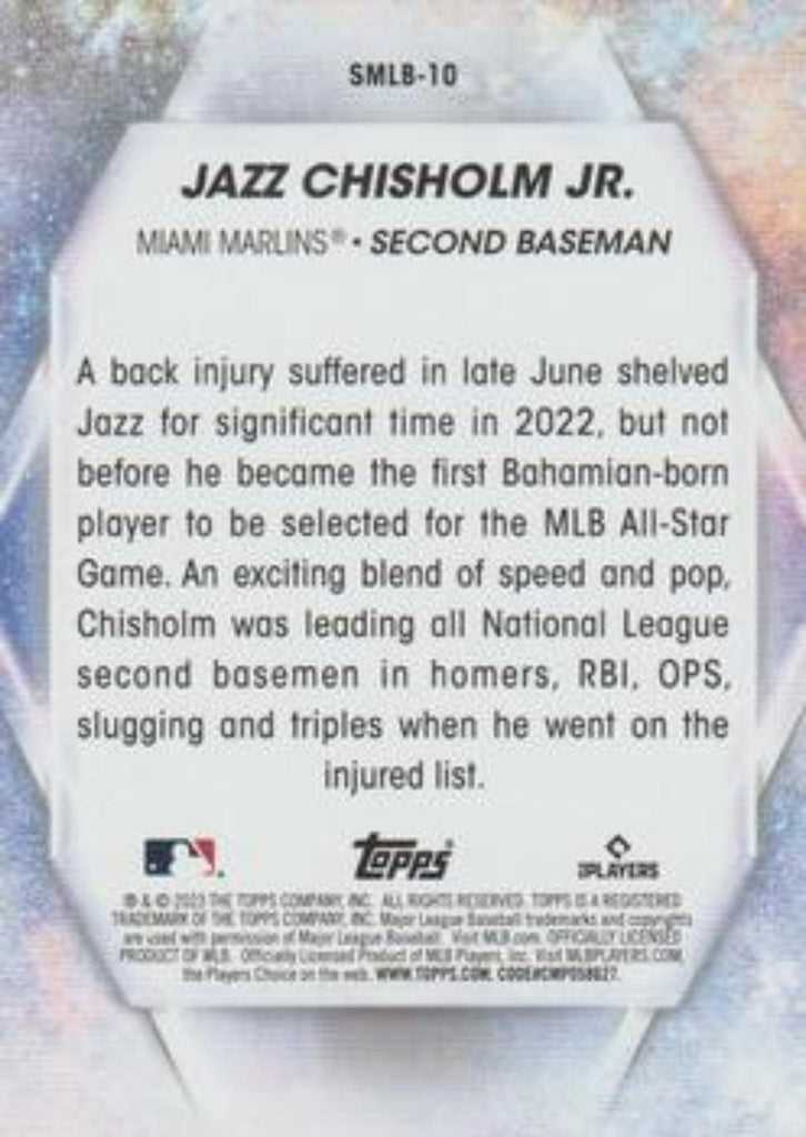 This is a nice example of a 2023 Topps #SMLB-10 Jazz Chisholm Jr. Stars of MLB.
