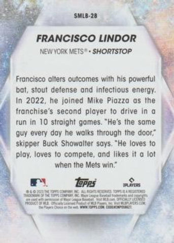 This is a nice example of a 2023 Topps #SMLB-28 Francisco Lindor Stars of MLB.