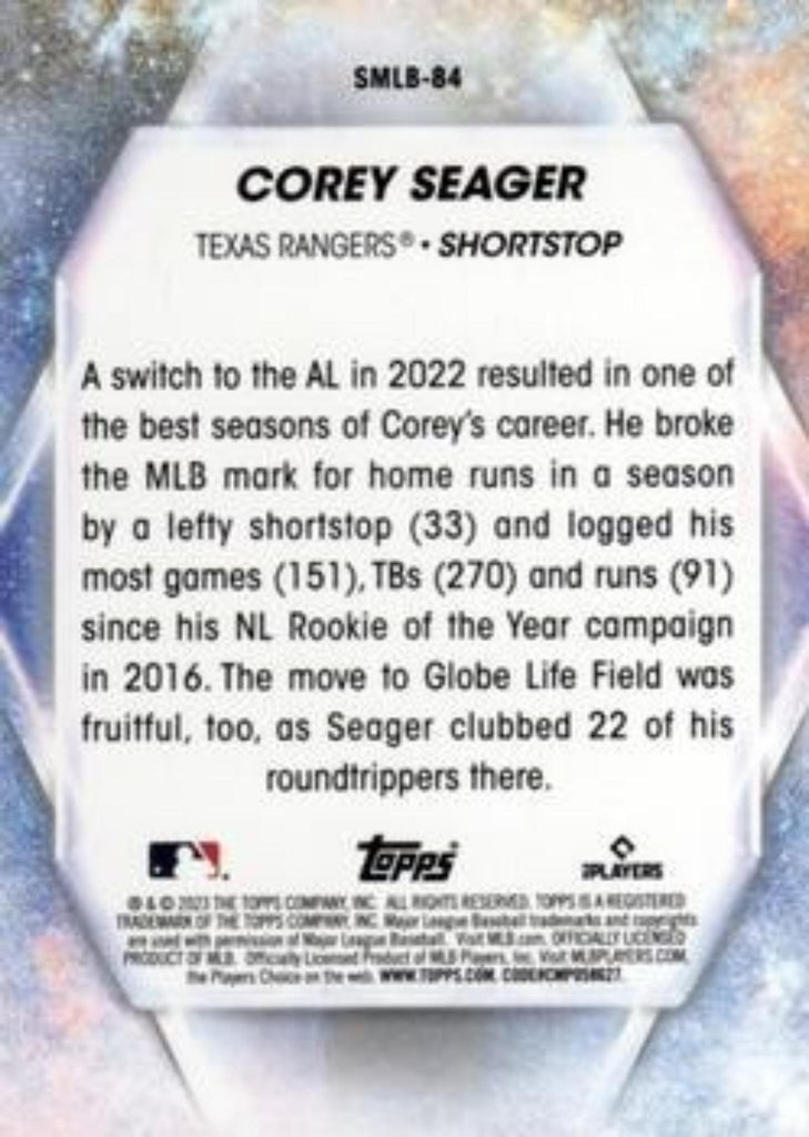 This is a nice example of a 2023 Topps Update #SMLB-84 Corey Seager Stars of MLB.