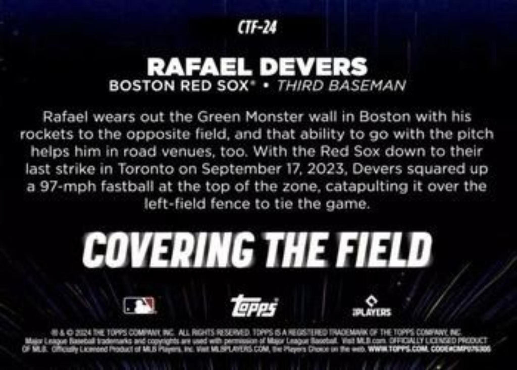 This is a nice example of a 2024 Topps #CTF-24 Rafael Devers Covering the Field.