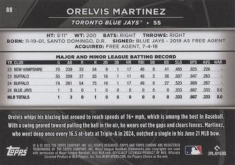 This is a nice example of a 2025 Topps Chrome Black #88 Orelvis Martinez .