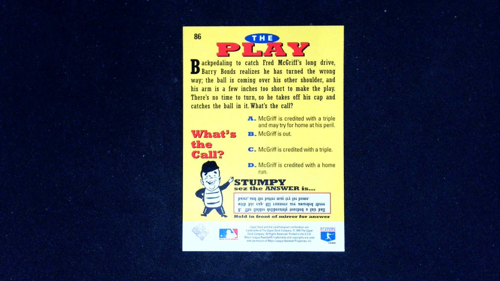 This is a nice example of a 1995 Collector's Choice #86 Barry Bonds .