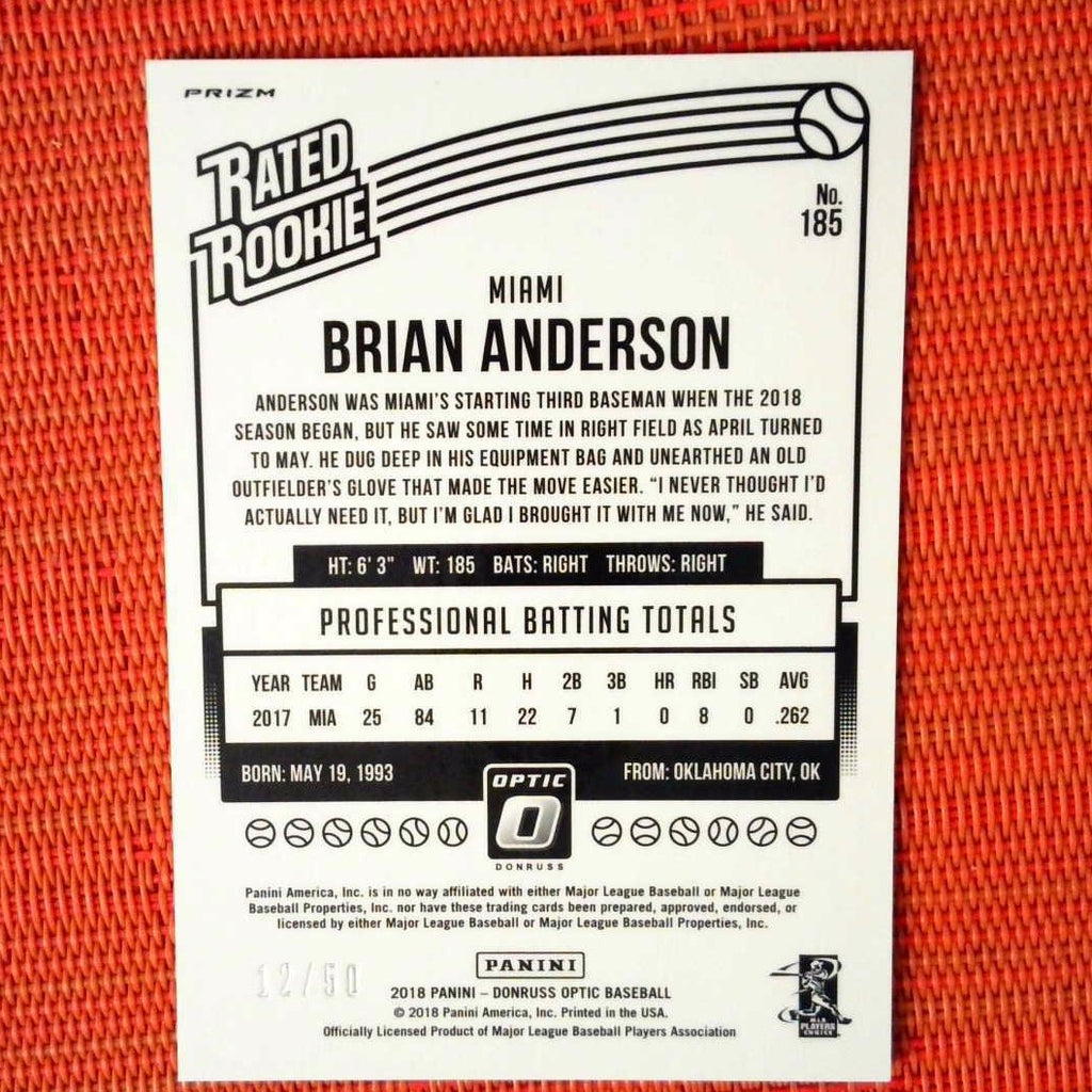 2018 Panini Optic #185 Brian Anderson Marlins RC #12/50 Nmt
