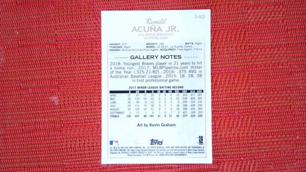 This is a nice example of a 2018 Topps Gallery #140 Ronald Acuña Jr. .