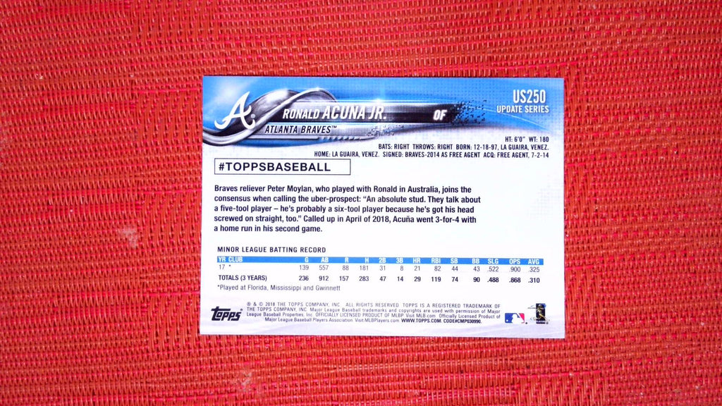 This is a nice example of a 2018 Topps Update #US250a Ronald Acuna Jr. .