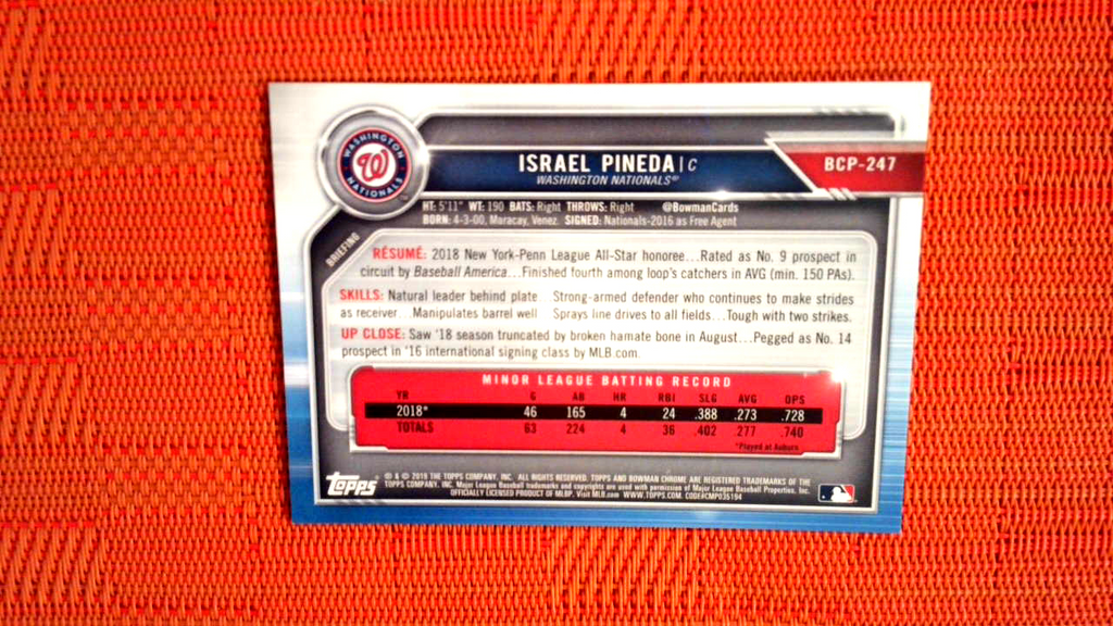 2019 Bowman Chrome Prospects Blue Refractor /150 Israel Pineda #BCP-247