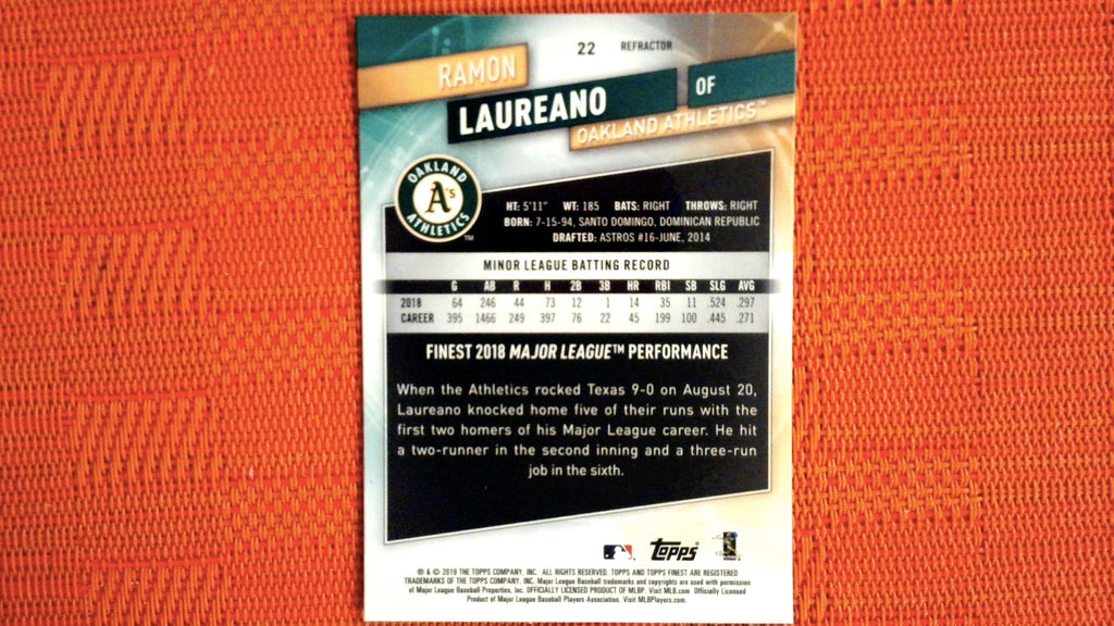 This is a nice example of a 2019 Finest #22 Ramon Laureano Refractor.