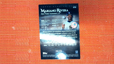 This is a nice example of a 2019 Stadium Club #173 Mariano Rivera Rainbow Foilboard.