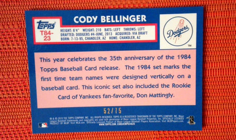 2019 Topps 1984 Purple #'d 52/75 Cody Bellinger #T84-23 Dodgers SP 35th Ann