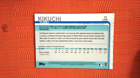 This is a nice example of a 2019 Topps Chrome #73 Yusei Kikuchi Negative Refractor.