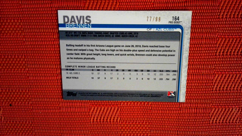 2019 Topps Pro Debut Green /99 Brennen Davis #164